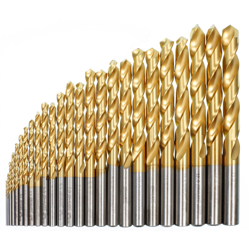 tuttavia, si consiglia di evitare il contatto. Nessuna protezione dall'acqua.Dati tecnici Area di foratura 1 mm - 13 mm Rivestimento TiN Materiale da taglio HSS Norma DIN 338 Modello N Tolleranza ⌀ nominale h8 Angolo di affilatura 118 ° Angolo dell'elica 35-40 ° Codolo Codolo cilindrico Numero taglienti Z 2 Passaggio interno per LR no Numero di punte 25 Punte a misure crescenti di 0,5 mm in cassetta no Colore collarino senza Tipo di prodotto Punta elicoidale Codice articolo 115265 1-13 EAN / GTIN 4045197024763