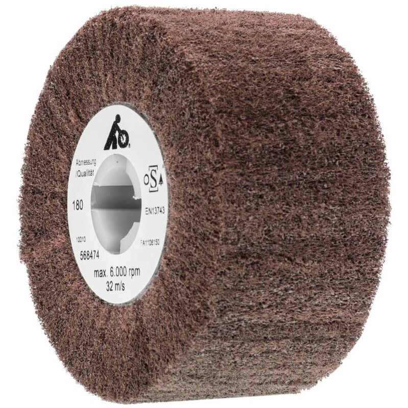 Dimensioni standard ⌀ 100×100 mm oppure esecuzione sottile ⌀ 100×50 mm per la lavorazione di piccole superfici. Foro di alloggiamento ⌀ 19 mm con sede multipla. Tessuto con corindone normale (A) incorporato. Uso: Tessuto fine per lavori di pulizia leggeri e finiture superficiali uniformi. Nota: Per la compensazione della larghezza di spazzole sottili di ⌀ 100×50 mm, set di anelli distanziali n. art. 568439. Dati tecnici a secco idoneo Acciaio < 60 HRC m/s idoneo Acciaio < 67 HRC m/s limitatamente adatto Acciaio < 900 N/mm² m/s idoneo INOX m/s idoneo Alluminio, CFRP m/s idoneo Al/Mg m/s idoneo Ti m/s idoneo Vernice m/s limitatamente adatto CuZn m/s idoneo Acciaio < 1400 N/mm² m/s idoneo Acciaio < 55 HRC m/s idoneo GG(G) m/s idoneo Larghezza rullo mm 50 Sigla materiale abrasivo A Percentuale di ferro, zolfo e cloro % < 0,1 ⌀ Foro mm 19 ⌀ Rullo mm 100 Attributo del nome del prodotto ⌀ 100×50 mm Tipo di prodotto Spazzola lamellare abrasiva in tessuto non tessuto Velocità consigliata