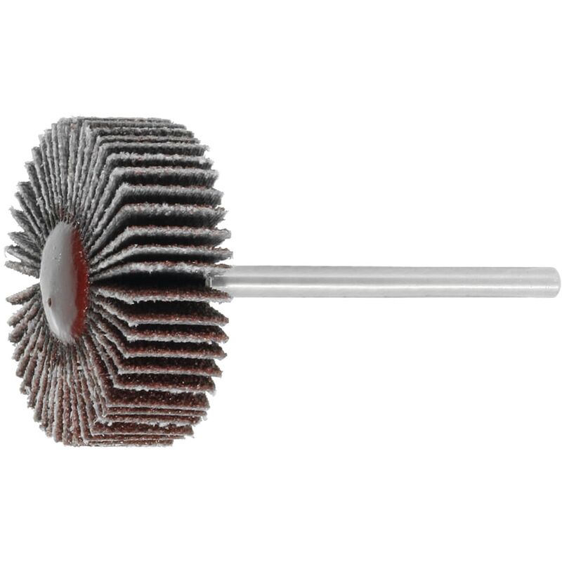 Disposizione a ventaglio delle lamelle attorno all'asse dell'utensile. Lamelle abrasive rivestite con corindone normale (A). Uso: Adatte per lavori di lisciatura e di lucidatura a grande raggio nella costruzione di stampi e utensili e nella realizzazione di apparecchi e contenitori. Le lamelle abrasive si adattano ai contorni del pezzo. Dati tecnici Alluminio, CFRP m/s idoneo a secco idoneo Legno m/s idoneo Al/Mg m/s idoneo Acciaio < 1400 N/mm² m/s limitatamente adatto Acciaio < 55 HRC m/s idoneo Acciaio < 60 HRC m/s limitatamente adatto CuZn m/s idoneo GG(G) m/s limitatamente adatto Acciaio < 900 N/mm² m/s idoneo Materiale abrasivo Grana abrasiva al corindone (A) Sigla materiale abrasivo A Attributo del nome del prodotto grana 240 Tipo di prodotto Spazzole lamellari in tessuto abrasivo con gambo ⌀ Testa, mm 30 Velocità consigliata, min-1 16.000 Numero massimo giri, min-1 25.400 Grana 240 ⌀ Gambo, mm 6 Larghezza della testa, mm 5