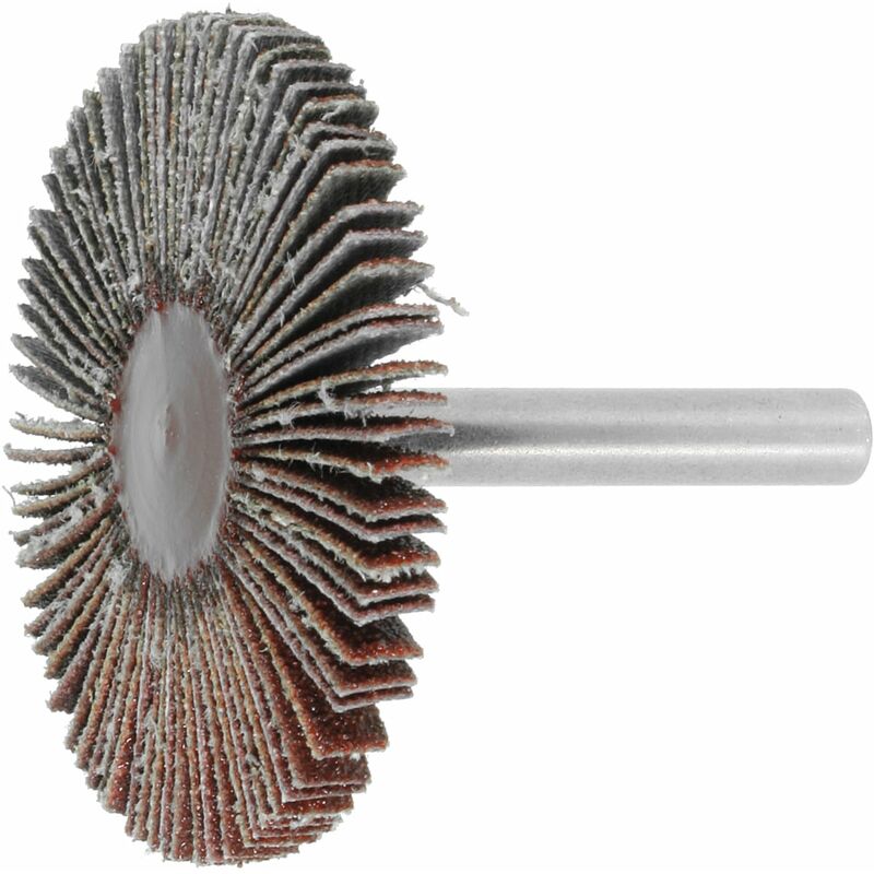 Disposizione a ventaglio delle lamelle attorno all'asse dell'utensile. Lamelle abrasive rivestite con corindone normale (A). Uso: Adatte per lavori di lisciatura e di lucidatura a grande raggio nella costruzione di stampi e utensili e nella realizzazione di apparecchi e contenitori. Le lamelle abrasive si adattano ai contorni del pezzo. Dati tecnici Legno m/s idoneo Alluminio, CFRP m/s idoneo Acciaio < 55 HRC m/s idoneo Acciaio < 60 HRC m/s limitatamente adatto Al/Mg m/s idoneo Acciaio < 900 N/mm² m/s idoneo GG(G) m/s limitatamente adatto Acciaio < 1400 N/mm² m/s limitatamente adatto CuZn m/s idoneo a secco idoneo Sigla materiale abrasivo A Materiale abrasivo Grana abrasiva al corindone (A) Attributo del nome del prodotto grana 120 Tipo di prodotto Spazzole lamellari in tessuto abrasivo con gambo ⌀ Testa, mm 50 Velocità consigliata, min-1 11.000 Numero massimo giri, min-1 16.000 Grana 120 ⌀ Gambo, mm 6 Larghezza della testa, mm 5