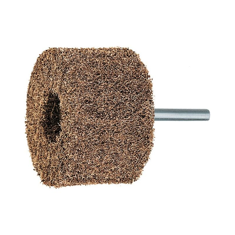 Disposizione a ventaglio delle lamelle in tessuto attorno all'asse dell'utensile. ⌀ Codolo 6 mm. Tessuto con corindone normale (A) incorporato. Realizza una finitura opaca e uniforme. Uso: Per rimuovere impurità e strati di ossido dai metalli, nonché per opacizzare gli acciai al Cr-Ni e altri metalli legati, ma anche metalli non ferrosi. Dati tecnici CuZn m/s idoneo Acciaio < 1400 N/mm² m/s idoneo Acciaio < 55 HRC m/s idoneo Legno m/s idoneo Vernice m/s limitatamente adatto Acciaio < 900 N/mm² m/s idoneo Ti m/s limitatamente adatto INOX m/s idoneo Acciaio < 60 HRC m/s limitatamente adatto a secco idoneo GG(G) m/s idoneo Alluminio, CFRP m/s idoneo Acciaio < 67 HRC m/s limitatamente adatto Al/Mg m/s limitatamente adatto Confronto granulometrico 180 Grado di finezza medio Sigla materiale abrasivo A Attributo del nome del prodotto medio Tipo di prodotto Spazzole lamellari in tessuto abrasivo con gambo ⌀ Testa, mm 30 Velocità consigliata, min-1 7.500 Numero massimo giri, min-1 14.000 ⌀