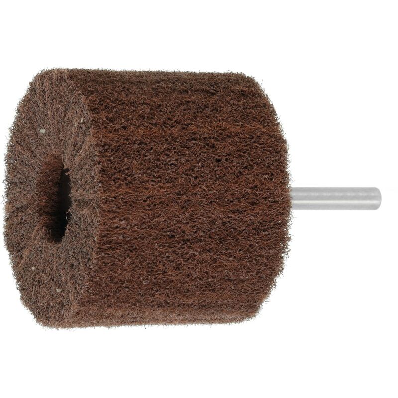Disposizione a ventaglio delle lamelle in tessuto attorno all'asse dell'utensile. ⌀ Codolo 6 mm. Tessuto con corindone normale (A) incorporato. Realizza una finitura opaca e uniforme. Uso: Per rimuovere impurità e strati di ossido dai metalli, nonché per opacizzare gli acciai al Cr-Ni e altri metalli legati, ma anche metalli non ferrosi. Dati tecnici CuZn m/s idoneo Acciaio < 1400 N/mm² m/s idoneo Acciaio < 55 HRC m/s idoneo Legno m/s idoneo Vernice m/s limitatamente adatto Acciaio < 900 N/mm² m/s idoneo Ti m/s limitatamente adatto INOX m/s idoneo Acciaio < 60 HRC m/s limitatamente adatto a secco idoneo GG(G) m/s idoneo Alluminio, CFRP m/s idoneo Acciaio < 67 HRC m/s limitatamente adatto Al/Mg m/s limitatamente adatto Confronto granulometrico 180 Grado di finezza medio Sigla materiale abrasivo A Attributo del nome del prodotto medio Tipo di prodotto Spazzole lamellari in tessuto abrasivo con gambo ⌀ Testa, mm 60 Velocità consigliata, min-1 5.000 Numero massimo giri, min-1 9.000 ⌀