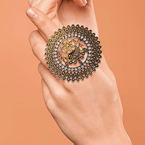 Holibanna Esagerato Anello di Barretta Grande Rotonda Anello di Dichiarazione Vintage Oro Anelli Anello di Stile Etnico dei Monili Hollow Anello di Diamante per Le Donne Signore