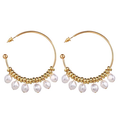Holibanna - 1 paio di orecchini a cerchio da donna con perle e pendenti, orecchini a cerchio