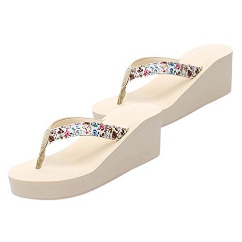 Holibanna 1 Paio di Pantofole con Zeppa Floreale Infradito con Zeppa per Donna (Stile Floreale Beige Taglia 36 23Cm Lunghezza 6Us 3. 5Uk 36. 5Eu 9. 039)