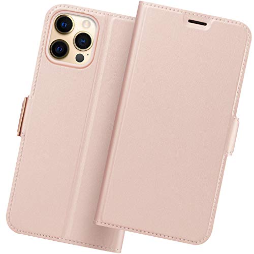 Holidi Cover per iPhone 12 pro, Cover iPhone 12 pro Libro, Custodia iPhone 12 pro con [Supporto] [Slot per Schede] [Chiusura Magnetica] Portafoglio di PU Pelle, Flip Phone Case. Oro Rosa