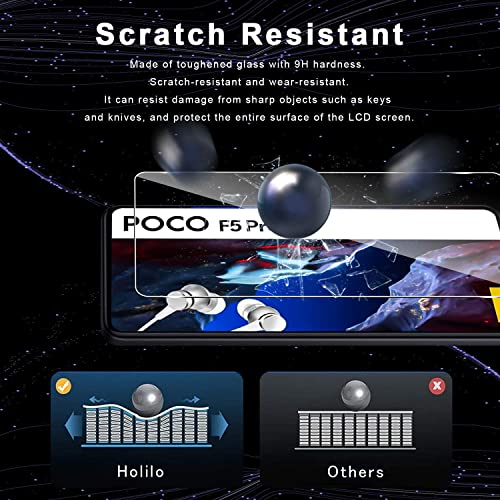 Holilo [2+2 Pezzi Vetro Temperato Pellicola per Xiaomi POCO F5 Pro 5G Pellicola Protettiva e Pellicola Fotocamera, Pellicola Durezza 9H Protezione Schermo HD Anti-graffio Anti-Impronta