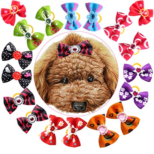 Hollihi - Set di 50 fiocchi per capelli per cani e cani, con elastici in gomma, per cani e gatti, con fiocco, per capelli lunghi