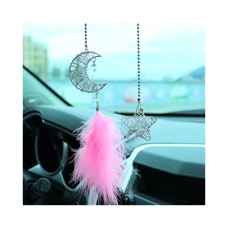 Hollow Creative Moon Feather Car Rear View Mirror Car Pendant Hanging Car Styling Accessories Auto Decoration Bedroom Dormitory Decoration Gift For Girls Features: Material Made of high quality iron rings and feathers,, durable, hand made, comfortable and beautiful, unique car decoration Design The perfect combination of moon and feathers looks gorgeous and elegant, very suitable for decorating cars, and can make your car look unique Perfect gifts Feather pendants are perfect gifts for children, family, lovers or friends. It is a gift full of love and surprises on Thanksgiving, Valentine s Day, Mother s Day, birthdays and other important holidays Multiple Uses You can hang our and star shaped feather in the bedroom, wall, living room, study, office, kids room or car as a decorative ornament. Made of high quality iron rings and feathers,, durable, hand-made, comfortable and beautiful, unique car decoration Product Description: Material: iron ring, feather Color: white, pink, gray