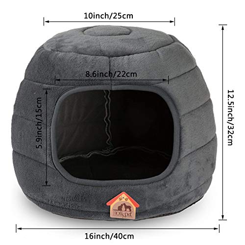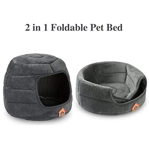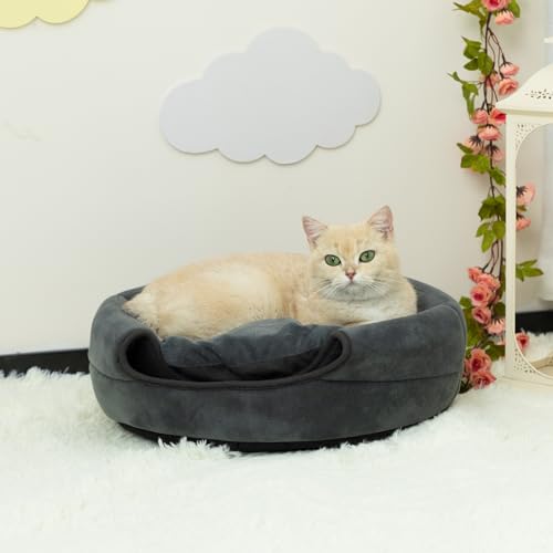 Hollypet Cuccia per Gatti Letto per Gatti Letto per Cuccioli, Pieghevole 2 in 1 Letto per Animali Domestici, Letto Caldo in Velluto Morbido e Caldo per Dormire, Grigio Scuro, S(40x32cm)