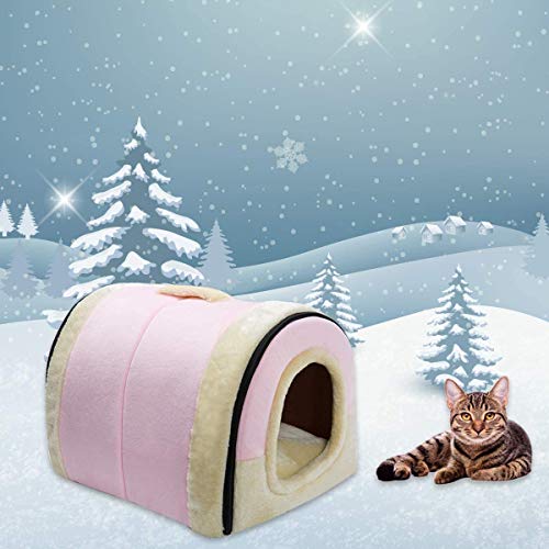 Hollypet Cuccia Gatto Cuccia per Gatti Letto per Piccolo Cane 2-in-1 Pieghevole Letto per Animali Domestici, Rosa