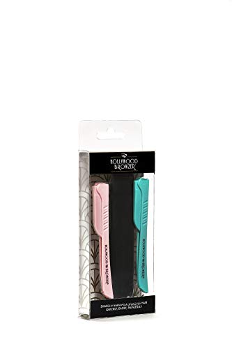 Hollywood Browzer Rasoio per sopracciglia, confezione da 2, (1 rosa e 1 blu), con astuccio protettivo, per modellare le sopracciglia, rimuovere i peli superflui ed esfoliare la pelle
