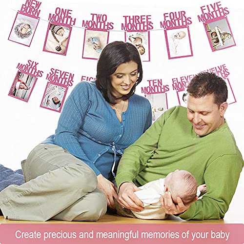 Holoras 1 ° Compleanno Decorazione Set, Decorazioni Primo Compleanno Bimba, 1-12 Mesi Bandiera Fotografico di Compleanno per Neonati Primo Set di Decorazioni di Compleanno,Rosa (Rosa)