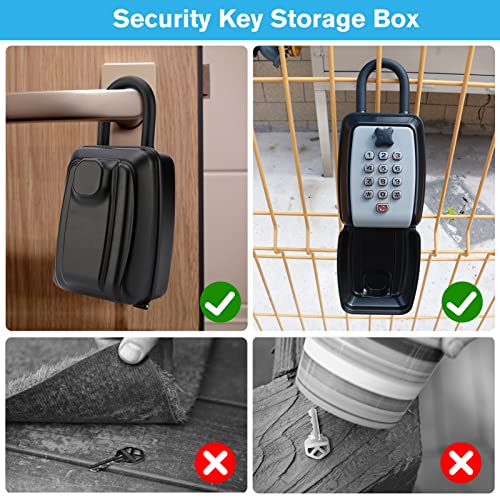 【Cassetta di Sicurezza】Dimensioni esterne(LxWxH): 4.7x3.7x2.4in/12.1x9.5x6.2cm, dimensioni interne(LxWxD): 3.5x3.1x1.18in/9x8x3cm. Con ganci, può contenere più portachiavi, carte da porta, carte di credito, carte d'identità, contanti. Fornisce ampio e sicuro spazio interno per i tuoi oggetti di valore, non preoccuparti mai di dimenticare le chiavi o di avere le chiavi e le carte rubate sotto il tappeto. Rende anche facile per familiari, amici o lavoratori domestici visitare la tua casa.