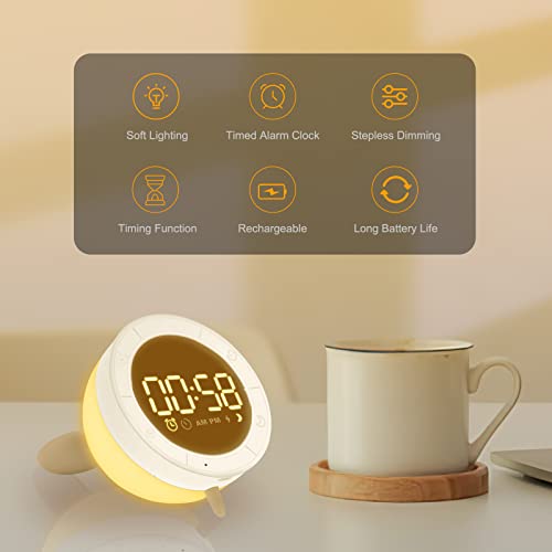 ⏰【Sveglia Digitale Lampada Notturna】:2 modalità di illuminazione, luce calda e luce bianca possono essere commutate tramite il pulsante della luce, la luce è morbida e non abbaglia. La luminosità del display dell'ora può essere regolata in base al giorno e alla notte ruotando la coda del mouse, luce soffusa notturna, simulare la luce naturale, proteggere gli occhi dei tuoi o dei bambini. Fornire un ambiente per dormire di alta qualità ed è un buon compagno per gli studenti che studiano con esso.