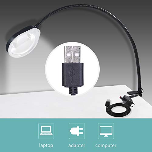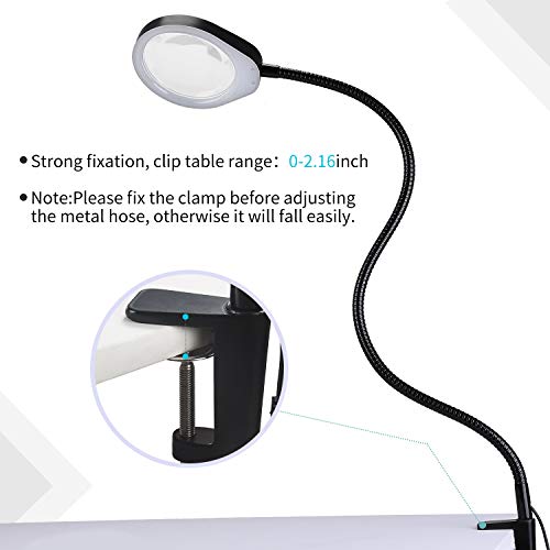 HOLULO Lampada con Lente d'Ingrandimento,10X Scrivania Lampada con Lente da Tavolo con Luce,Lampada da Lavoro con Supporto e Metallico Regolabile per Artigianato, Gioielli, Cucito, Lettura (Nero)