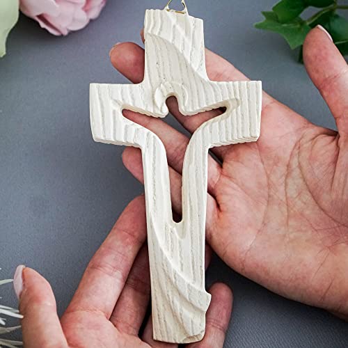 Holy Family Crocifisso Croce Cristo forato e striato 16 cm in Resina e Polvere di Marmo da Parete/in Chiave Moderna | Unico nel Suo Genere | Prodotto Artigianale Made in Italy