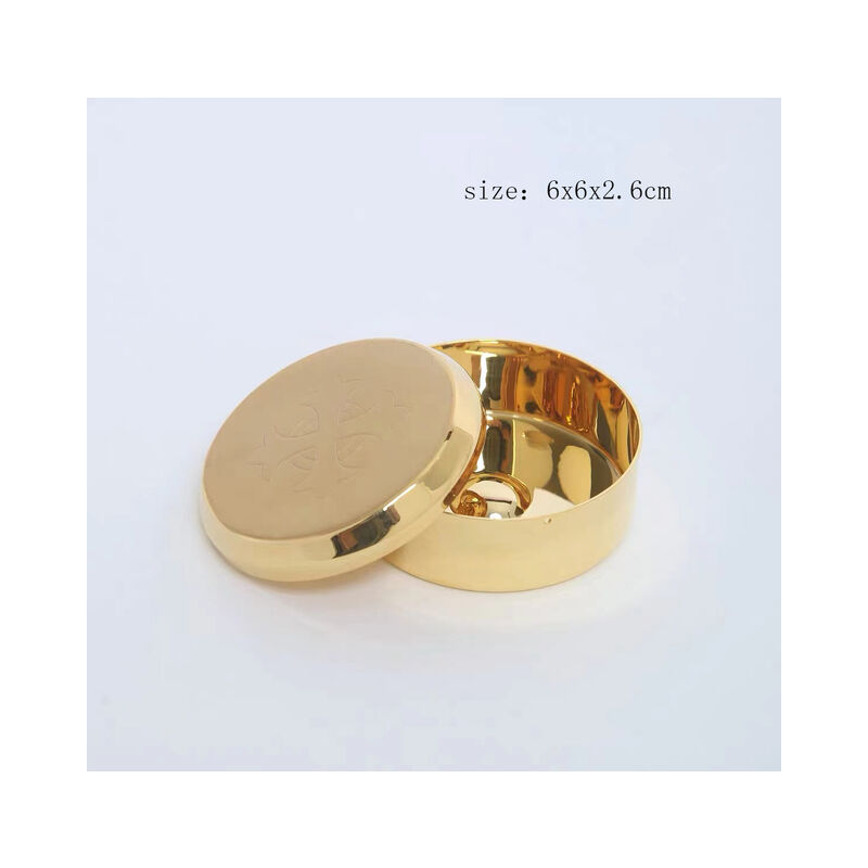 Holy Box Reliquary Copper ostenssorium Catholic Monstrance Cross Christian Gold Plated Souvenir Church Gift Formato: 6x6x2.6cmMateriale: Rame Puro Consigli per la manutenzione 1. Conservare in luogo asciutto.2. Evitare gas o luogo chimico.3. Aevitare lo strato di polvere di sporco, mantenere pulito.4. Si prega di utilizzare i guanti, non utilizzare la spazzola per lavare il prodotto, utilizzare un detergente neutro e un panno morbido per pulire.