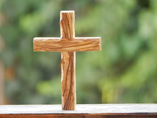 HolyRoses Croce da parete cristiana in legno d'ulivo realizzata a mano a Betlemme (25,4 cm)