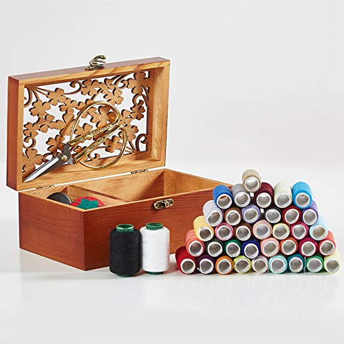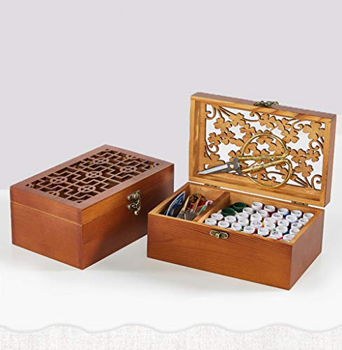 Holz sammlung Più Che 120 Kit di Accessori per Cucire Portatile Professionale Completo Set Scatola da Cucito in Legno per Trasporto Cesto da Viaggio Family House, Regalo per la Casa Artigianato DIY