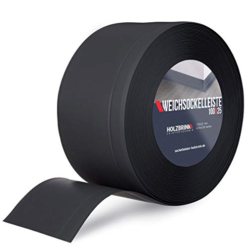 HOLZBRINK Battiscopa Morbido Nero Striscia Pieghevole Spezzata PVC, 100x25 mm, 5 m