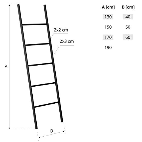 HOLZBRINK porta asciugamani appendiabiti porta asciugamani scala vintage, Elements 130x40 cm (alt x larg), nero, HLL-130-40-9005