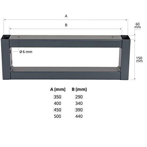 Il tuo progetto, la nostra soluzione: scegli tu stesso il tipo e la dimensione del piano (non compreso nell'offerta) - offriamo supporti in quattro profondità (350, 400, 450, 500 mm) e in quattro varianti colore (bianco, nero, antracite, acciaio grezzo verniciato) .