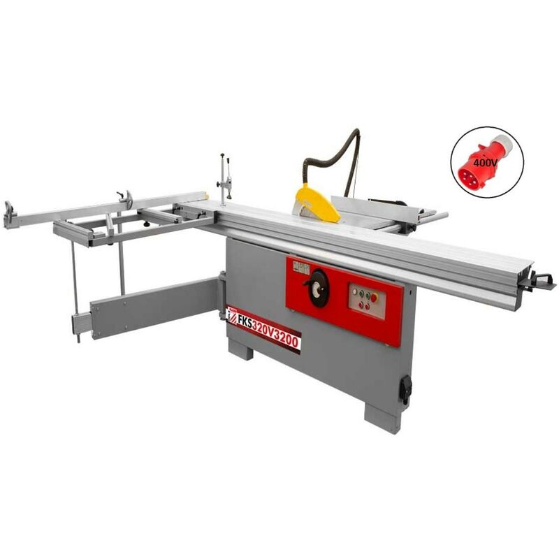 SQUADRATRICE CON TAVOLO SCORREVOLE DA LEGNO HOLZMANN FKS320V3200 400V La squadratrice con sega circolare e tavolo scorrevole FKS320V3200 400V ha un tavolo scorrevole in alluminio e tavolo stabilizzatore ideale per la lavorazione di pezzi e il taglio di pannelli molto grandi. Ha un pannello di controllo centrale montato sulla parte inferiore della macchine e la regolazione dell'altezza e dell'inclincazione della lama avviene tramite l'apposito volano montatto sulla macchine. L'allargamento e l'estensione del tavolo consentono un lavoro confortevole, oltre che a essere in alluminio per facilitare lo scorrimento dele tavole più pesanti. DETTAGLI TECNICI DATI DEL MOTORE Potenza motore S1 in W 4000 Voltaggio 400V / 3 / 50Hz DIMENSIONI Dimensioni tavola in mm 955x400 Altezza tavola in mm 900 Prolunga tavolo in mm 950x955 Formato tavola scorrevole in mm 3200x360 Tavolo allungabile in mm 1245 x 650 Raccordo di estrazione in mm 100 Dimensioni di installazione in mm 5130 (+1760) x 3480 (+1150)