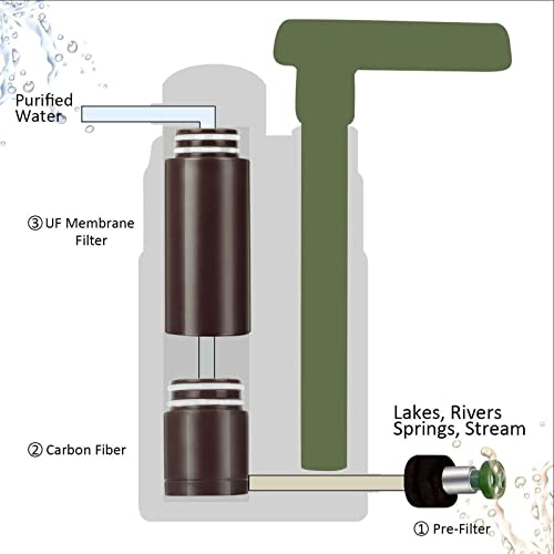 Holzsammlung Filtro per l'acqua da campeggio, depuratore d'acqua da campeggio portatile, filtro per l'acqua multistrato con pompa, adatto per l'escursionismo, il campeggio, il trekking
