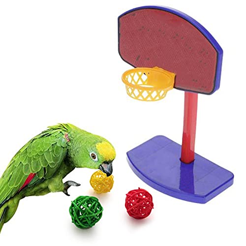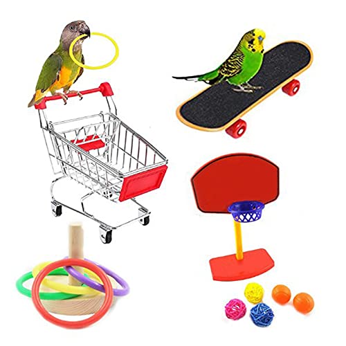 Holzsammlung 4 Pezzi Giocattoli per Uccelli da Addestramento Giocattoli per Uccelli Set Giocattolo Interattivo Puzzle per Pappagalli, Mini Carrello della Spesa, Skateboard, Tabellone da Basket