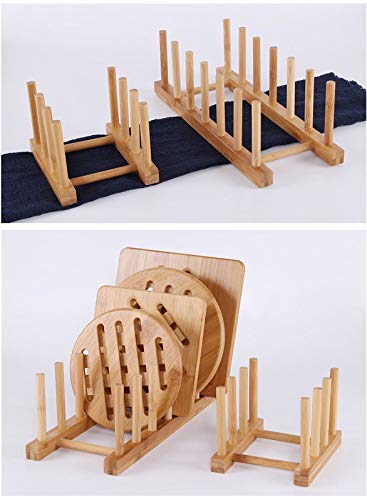 Facile da installare: 8 picchetti verticali in bambù (4 su entrambi i lati) creano 3 slot per piatti o coperchi per pentole, i due lunghi rack e due pioli, ogni scaffale ha due fori. Per assicurarsi che colleghi ogni pezzo più stretto, è meno tolleranza design. Quando si installa, spingere i picchetti in rack laterali con un po 'di grande pressione, quindi l'intero rack sarà stretto. Scolapiatti in bambù in pezzi decorativi mostrati nelle foto del prodotto non sono inclusi.