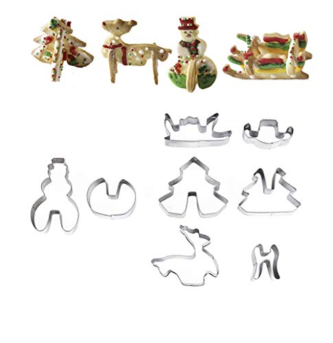 Holzsammlung Set Tagliabiscotti Natalizi da 18 Pezzi, Stampi in Acciaio Inossidabile, Albero di Natale, Renna, Pupazzo di Neve e Omino di Pan di Zenzero per la Cottura di Torte Fondenti