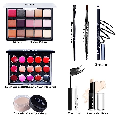 Tutto-in-Uno Kit Cosmetica - Il set di trucco primario fatto di alta qualità è completamente attrezzato, sicuro e affidabile. Un set può risolvere il trucco di tutto il viso. Il nostro kit di trucco multiuso che può soddisfare tutte le vostre esigenze di trucco. Include: tavolozza di lucidalabbra, tavolozza di ombretti, mascara, correttore, correttore in stick, eyeliner, matita per eyeliner, pennello per ombretto.
