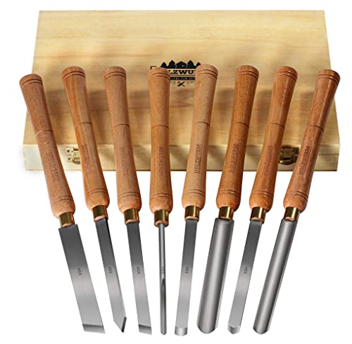 Valigetta in legno: il set di scalpelli per tornio viene fornito in una bella valigetta di legno (44,5 cm x 30 cm x 5,5 cm). In questo modo è possibile riporre gli strumenti in modo sicuro dopo la tornitura e avere sempre tutti gli strumenti a portata di mano quando si accende il tornio.