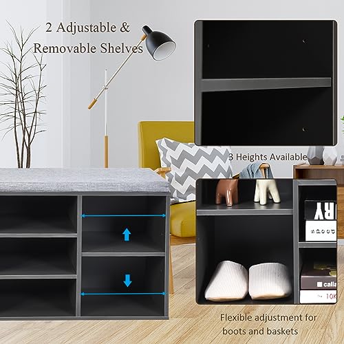 HOMASIS Panca scarpiera con seduta, scarpiera in legno e cuscino, mensola portaoggetti con 10 scomparti, 2 ripiani regolabili in altezza per ingresso, corridoio, soggiorno, 104 x 30 x 48 cm (grigio)