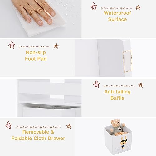 ~Grande spazio di archiviazione~ Questo scaffale per bambini offre un ampio spazio di archiviazione con 5 contenitori, 2 cassetti in tessuto rimovibili e 3 ripiani per libri. Si può utilizzare per riporre libri, vestiti, giocattoli, merendine, oggetti di uso quotidiano, ecc. del vostro bambino.