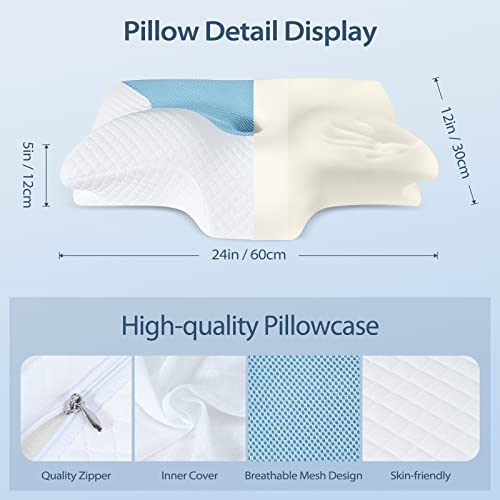 HOMCA Cuscino Cervicale Ergonomico Cuscino Memory Foam per Supporto Cuscino Ortopedico per Dormire sul Fianco e sulla Schiena, Blu