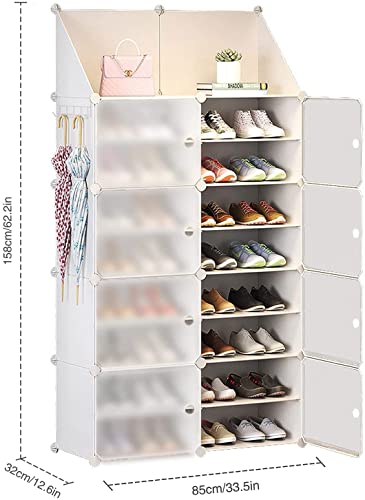 HOMCENT Scarpiera con ante espandibile per 16-32 paia di scarpe, stivali, pantofole, portascarpe in plastica per corridoio, camera da letto, ingresso (2 x 8 piani) (bianco)