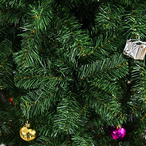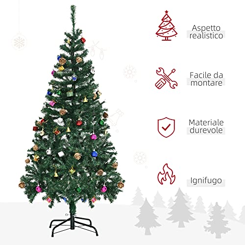 HOMCOM Albero di Natale 150cm con 420 Rami in PVC Ignifughi, Albero di Natale con Decorazioni e Rami Folti, Verde
