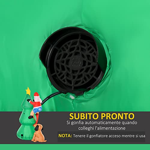 HOMCOM Albero di Natale Gonfiabile 180cm con Babbo Natale, Cagnolino e Luci LED, Decorazione Natalizia da Esterno