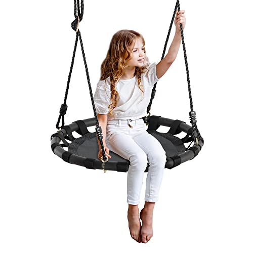RESISTENTE: Il telaio rotondo extra-large è realizzato in metallo resistente con un rivestimento in tessuto a rete traspirante. Le corde in nylon durevole rendono questa altalena rotonda sicura e robusta.