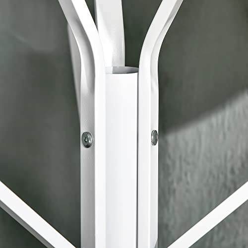 GRANDE SPAZIO DI STOCCAGGIO: 3 aste principali con 9 ganci, questo appendiabiti da è una perfetta soluzione per cappotti, borsette, sciarpe, giacche e altro. Lo scaffale del cerchio inferiore può contenere bidoni, ombrelloni e vasi di fiori.