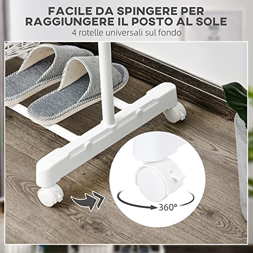 HOMCOM Appendiabiti Stender ad Altezza Regolabile in Acciaio Inox con Fondo Portaoggetti e 4 Ruote, 68.5x42x87-145 cm, Bianco e Argento