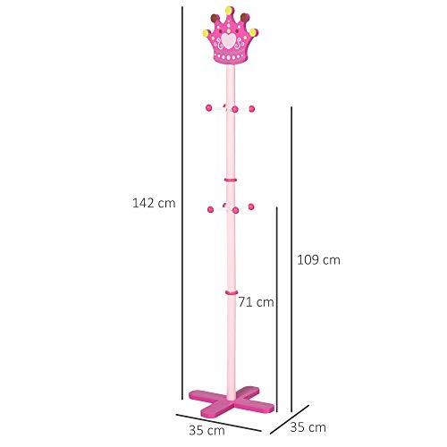 HOMCOM Appendiabiti da Terra per Cameretta Bambini in Legno Rosa con 8 Ganci e Design a Forma di Corona 35 x 35 x 142cm