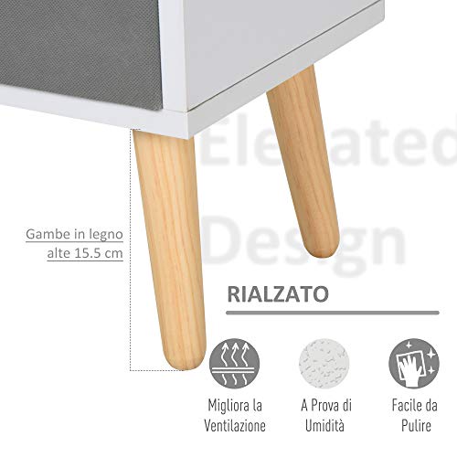 Homcom Armadietto Libreria in Legno Bianco 8 Ripiani e 4 Cassetti Pieghevoli in Tessuto Grigio e Marrone 54.5x24x122.5cm