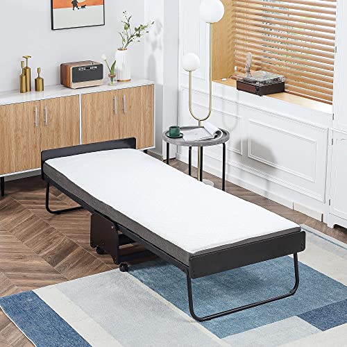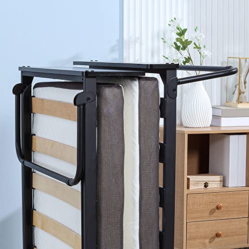Homcom Brandina Pieghevole con Materasso Alto 10cm, Letto Ospite Singolo con Ruote e Doghe, 80x200cm, Nero