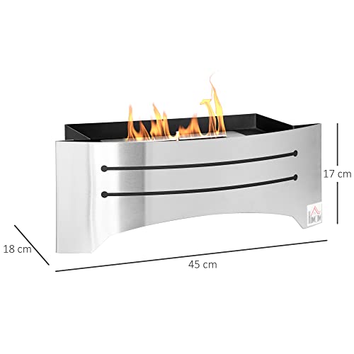HOMCOM Camino Bioetanolo da Tavolo in Acciaio Inox, 3h di Combustione con Serbatoio da 1.5L e Copertura 25m², 45x18x17 cm, Argento