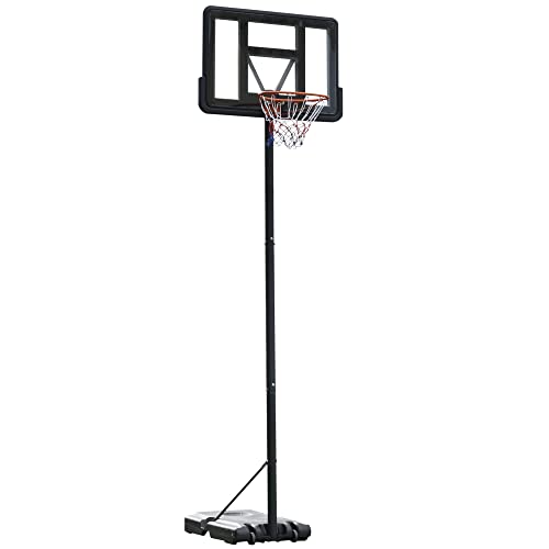 HOMCOM Canestro Basket Altezza Regolabile 160-305cm, Base con Ruote e Struttura in Acciaio, Tabellone in PVC Trasparente