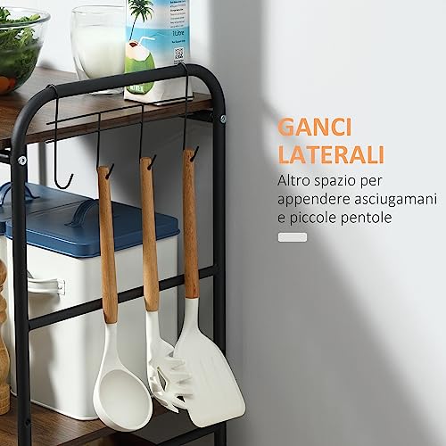 GANCI LATERALI: I tre ganci laterali del carrello offrono una soluzione comoda e ordinata per riporre panni, tazze, guanti da forno, e tutto quello di cui hai bisogno.
