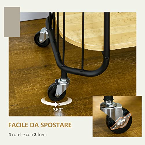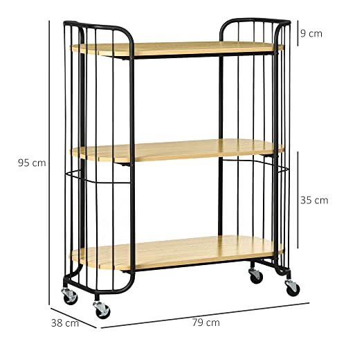 HOMCOM Carrello da Cucina Multiuso a 3 Livelli in Truciolato e Acciaio con Maniglia e 4 Ruote, 79x38x95 cm, color Legno
